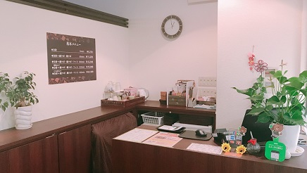 セラピストがお客様を笑顔で迎えます。受付ではメニューの確認や相談をさせていただきます。なんでもお気軽にご相談下さいね♪